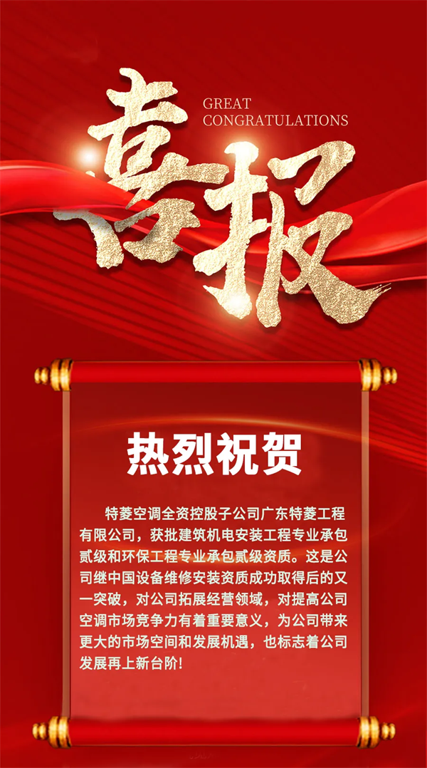 喜報!特菱空調(diào)全資控股子公司廣東特菱工程有限公司獲批